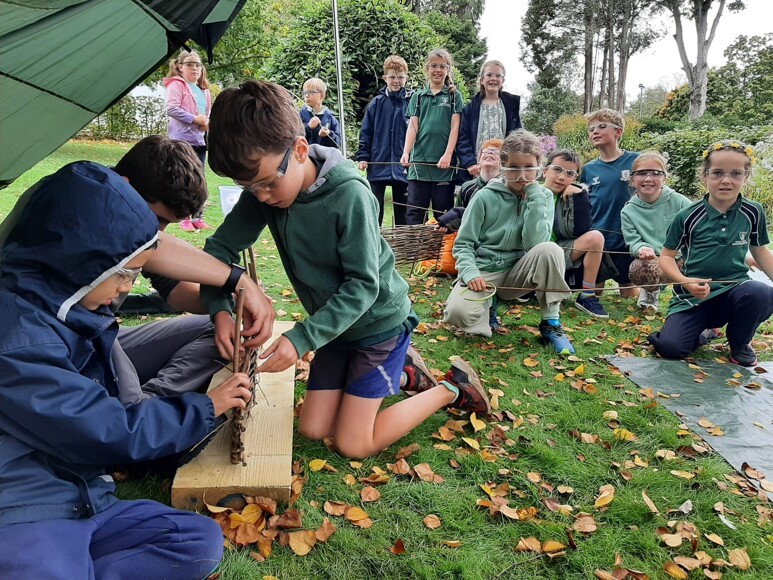 The four-year sustainability plan was launched by children enjoying a wide range of learning outside the classroom activities including: weaving woven petals that will be used to mark out wildflower meadows next Spring; basket making; and insect and honey tasting.